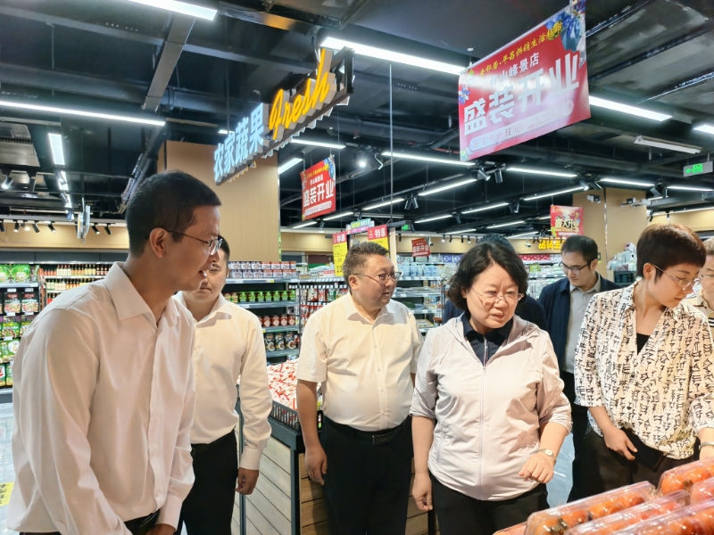 調(diào)研組一行在老鄰居·平昌供銷生活超市調(diào)研農(nóng)產(chǎn)品流通體系建設(shè)情況